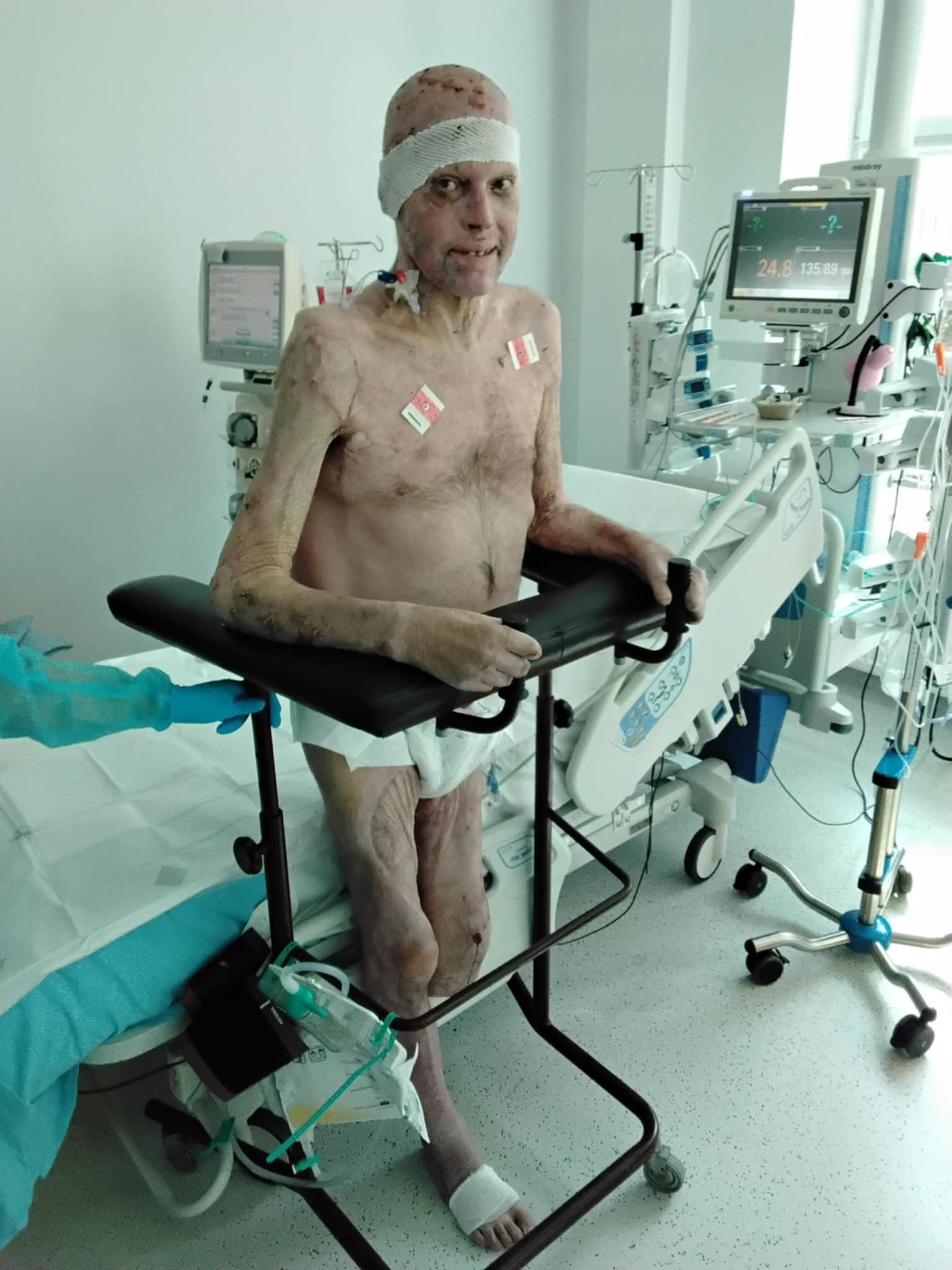 Mirek doznał oparzeń III stopnia obejmujących aż 80% powierzchni ciała oraz dróg oddechowych. Przeszedł już
